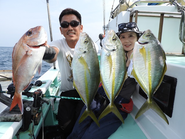 秋の高級五目釣り 基本マダイ狙いですが 状況でシマアジなどいろいろ狙います! 猛暑の時期は熱中症予防のため 午後船は出船しません! |
